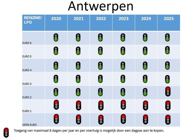 De diesel voorwaarden om Lage emissie zone van Antwerpen binnen te mogen verschillen tot 2024 niet van de voorwaarden voor Gent. Vanaf 2025 kan je hier tegen betaling nog binnenrijden.