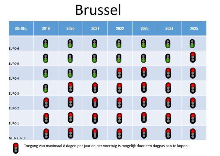 Vooral dieselauto’s worden geviseerd omdat ze meer luchtvervuilende en ongezonde stoffen uitstoten. Vanaf 2022 mogen ook diesels met Euro 4-norm niet meer binnen in Brussel.